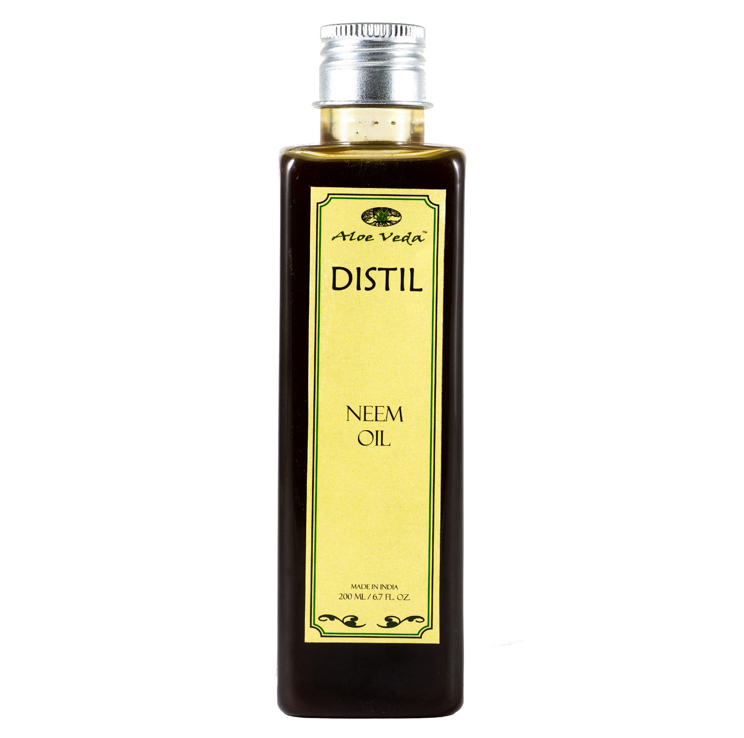 Neem paste applied externally to face, neck and skin, destroys the troublesome bacteria in the skin and reduce acne, pimples, and wrinkes and improves skin tone. Rub your body with neem paste before having a bath, let it dry for some time, and then wash it off with water, it will act as a good antibacterial cleanser. Washing your body with neem, makes it clean and radiant. Soak a few neem leaves in water overnight and bathe with this disinfectant water in the morning. Aloe Veda Distil Neem Oil is of the purest quality and is excellent as a face, neck and skin care oil. It is can be used instead of Neem Leaf as it is less messy. Adding a few drops of Neem Oil to bath water will make it and excellent disinfectant.